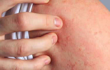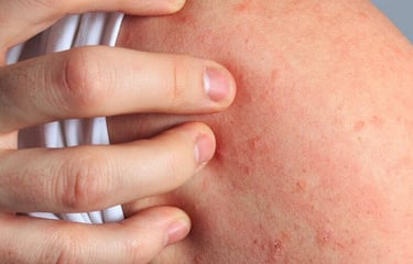 Treats eczema, psoriasis, rashes and itching with long-lasting homeopathic solutions.